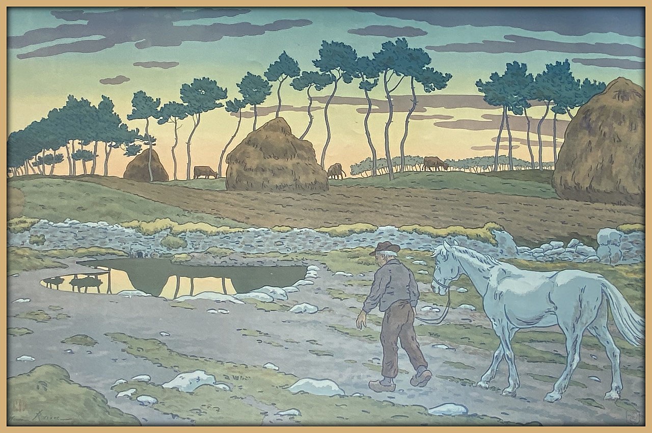 Cette estampe, elle est l’oeuvre d’un Français dont la vie s’est déroulée de la moitié du 19ème siècle à celle du 20ème. Cela donne le vertige d’autant qu’elle fut ponctuée par 3 terribles guerres : 1870 comme enfant ; 1914/18, en homme mûr ; 1940/45, en vieillard.